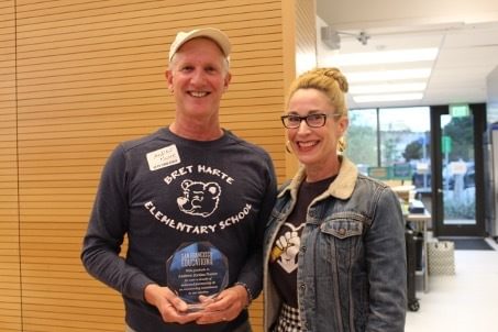 We also honored Andrew Jordan Nance, a longtime partner whose passion for mindfulness has blossomed into a thriving program. Back in 2014, Andrew Jordan Nance approached our organization with a powerful idea: to bring mindfulness into elementary school classrooms. He came to us not only with passion but with a complete curriculum – an instructor’s guide and picture books he had authored. With support from Tom and other staff, Andrew’s vision has since blossomed into a thriving program that has reached over 2,000 students across more than 40 SFUSD elementary schools.
