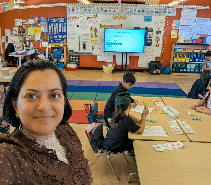 At the San Francisco Education Fund, we are fortunate to work with an incredible community of weekly volunteers who show up in classrooms across the city to support students and educators. Through this Volunteer Spotlight series, we’re excited to highlight the people behind that commitment and share the stories that inspire their service. This month, we’re featuring Nandini Ravindran, a scientist in the South San Francisco biotech community who immigrated from India about 15 years ago to pursue graduate studies in cell and molecular biology. During a recent sabbatical, Nandini sought out meaningful ways to give back and found that volunteering with SF Ed Fund offered a powerful way to support students’ well-being while connecting with the school community.