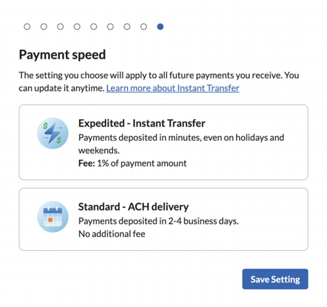 On the next screen you will be asked to choose your preferred payment speed. Select an option, and you're all set!